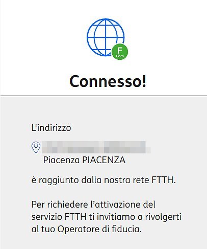Da circa un annetto FiberCop ha completato la posa delle fibre e del PTE, tant'è che da qualche mese vari vicini hanno attivato offerte con diversi operatori (Fastweb, TIM, Wind3) e, da verifica su FiberCop, il mio civico è coperto:
