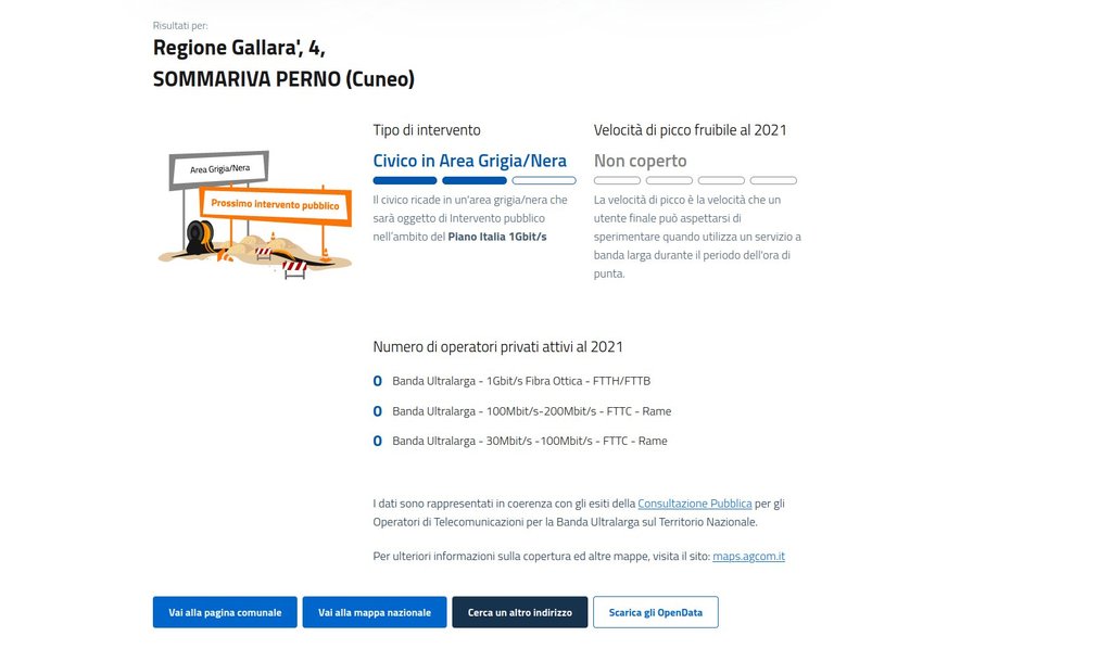 Ora, il mio civico non risulta presente all'interno del Piano BUL bensi' all'interno del Piano Italia 1 Giga (stranamente, area grigia/nera). Qui sotto allego la schermata del sito Banda UltraLarga.