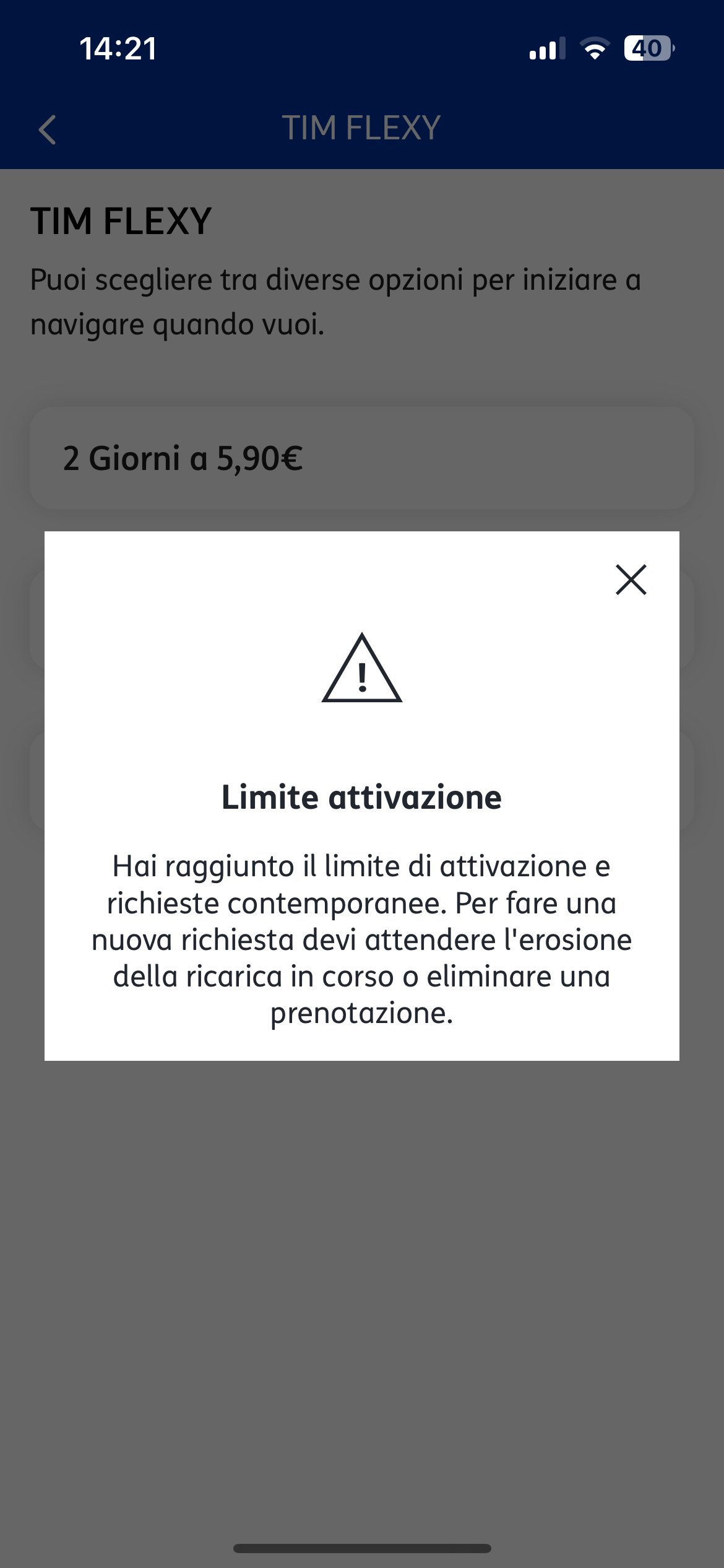 Io l’ho fatta e purtroppo è un inferno perché se acquisti una ricarica, nel mio caso 30 giorni, non puoi fare una nuova ricarica prima che scada quella attuale.