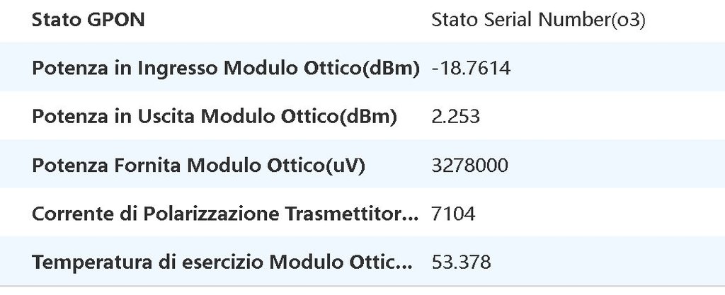 Giovedì pomeriggio però la linea e' andata off e analizzando i dati del SFP dice questo: