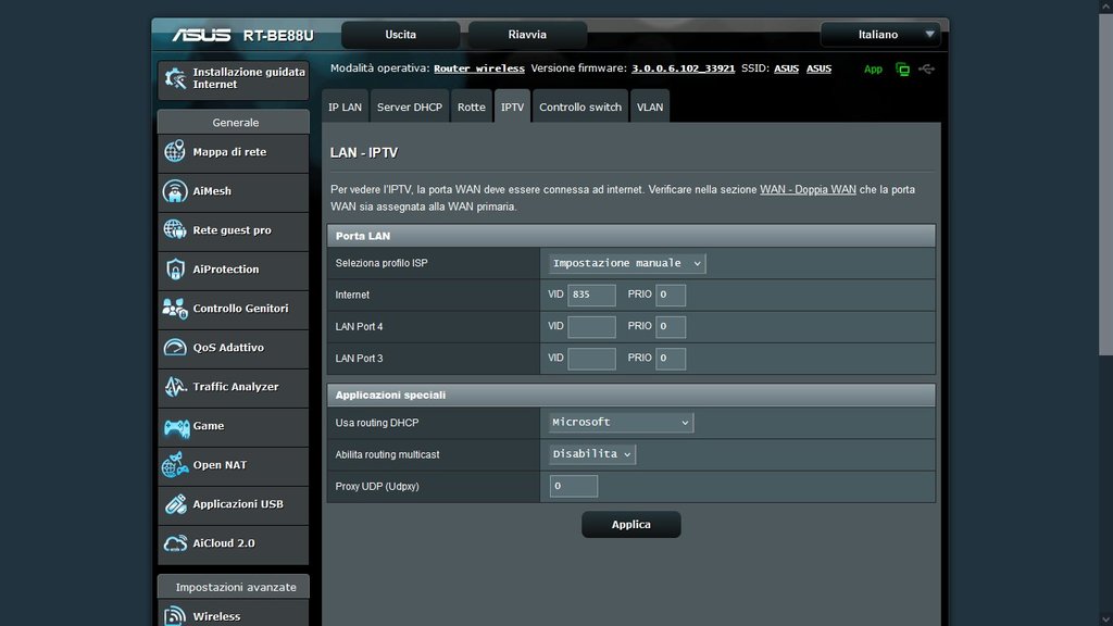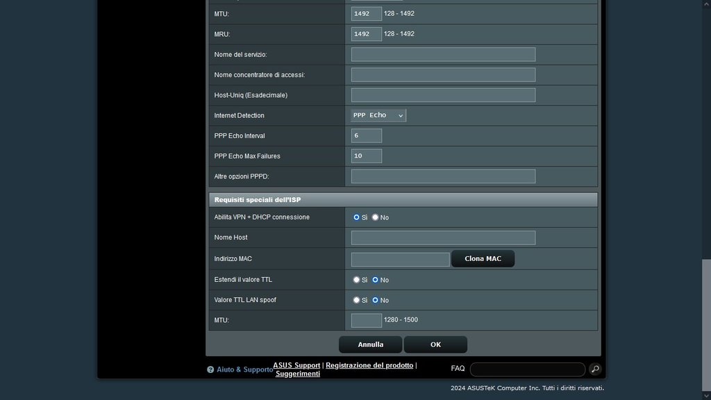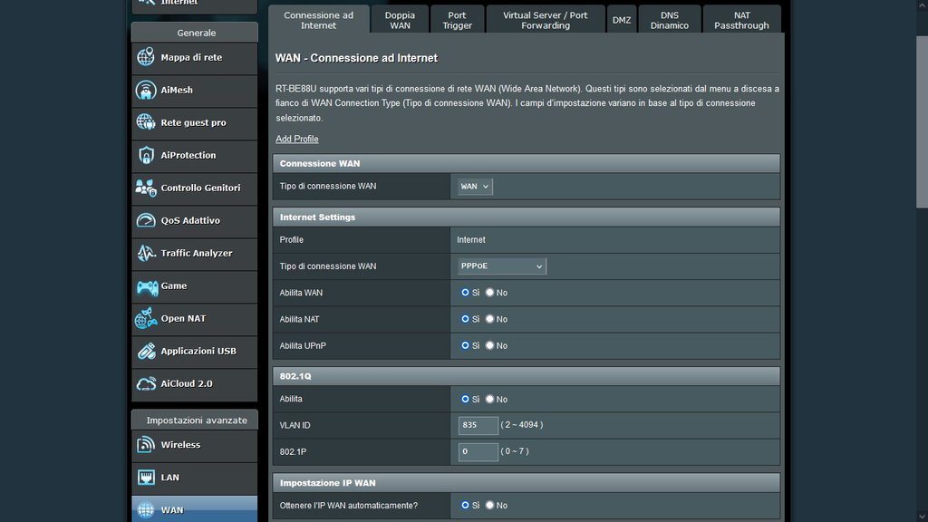Il primo problema è risolto. Adesso ne abbiamo un altro, abbiamo comprato suebay un ONT esterno ZTE (Modello: ZXHN F 6005) e abbiamo comprato su amazon questo router Asus RT-BE88U.