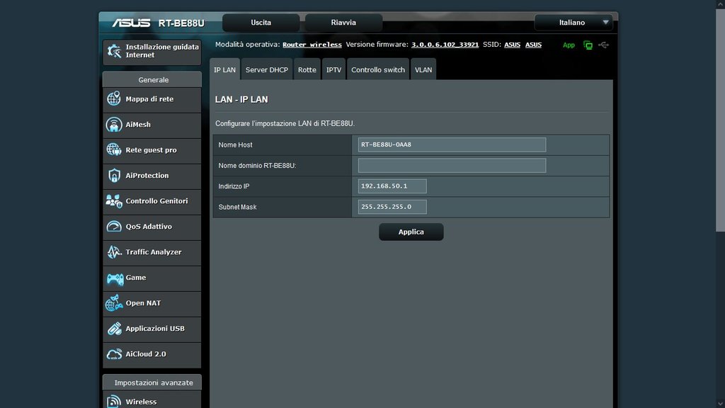 Purtroppo la spia del router Asus RT-BE88U resta rossa su internet quindi non riusciamo ad andare online.