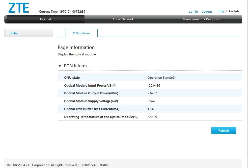 TheMarsican falcy Perfetti. PS: qui vedi solo potenza ottica in ricezione ed invio. L'attenuazione si misura tramite strumenti appositi da collegare alla fibra.