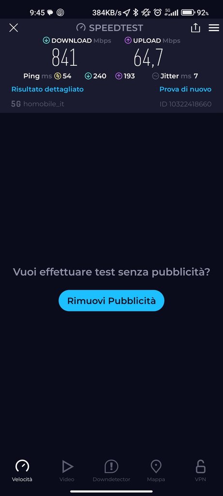 Abbiamo proceduto a fare Ho.Mobile con lui e tutto è filato liscio, adesso ho una SIM che funziona con voLTE, con 5G e 4G con velocità uguali a prima con Vodafone (se non superiori) sia sul 4G che 5G. Velocità sbloccate, a quanto pare non c'è limite.