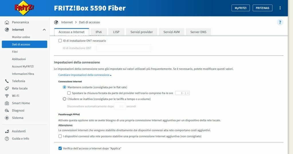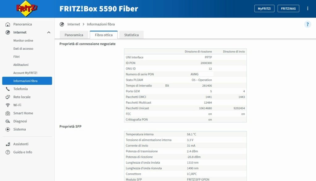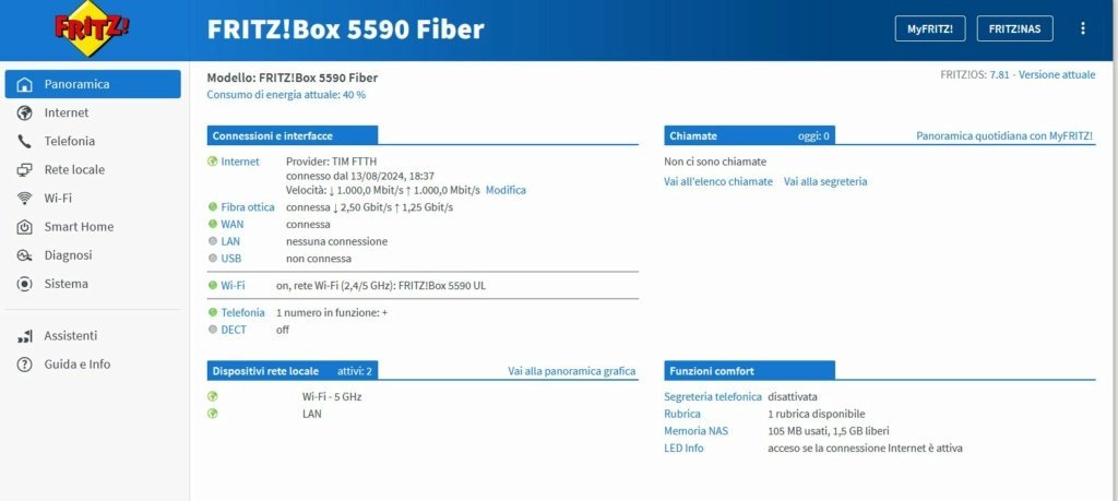 Ho appena attivato un nuovo abbonamento TIM WiFi Casa con velocità fino a 2,5 Gbps, sostituendo il modem TIM HUB+ Executive con il FRITZ!Box 5590, sempre fornito da loro (TIM), collegato direttamente via SFP al 5590