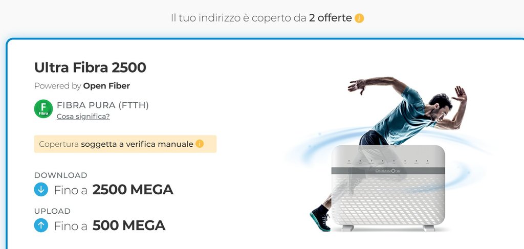 L'edificio fa da angolo in un incrocio con una via secondaria trasversale. Quest'ultima via risulta invece coperta da Fiber Cop (risulta coperta da FTTH da Fastweb). Paradossalmente, al piano terra del mio stesso condominio è presente un ufficio che ha la porta di ingresso che dà sulla via secondaria, con civico differente. Questo civico risulta coperto da Fiber Cop con FTTH.