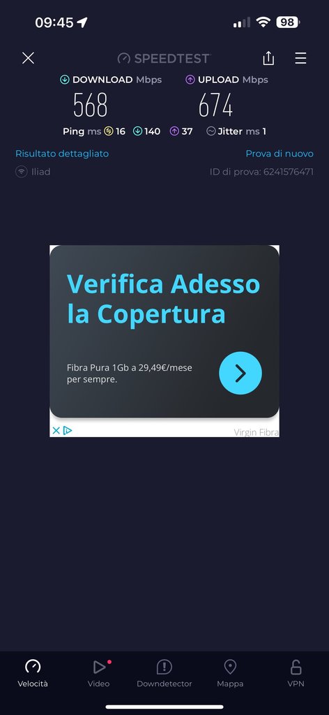 Buongiorno, mi hanno appena montato a casa la nuova fibra di iliad con iliad box wifi7; premesso che già avevo installato a casa la vodafone station 6 quindi ci hanno messo 10 minuti a collegarmi quella nuova di iliad.