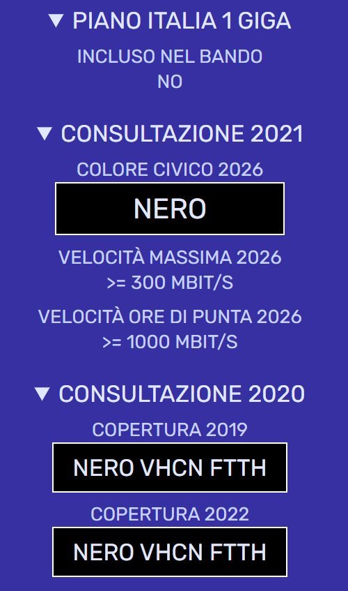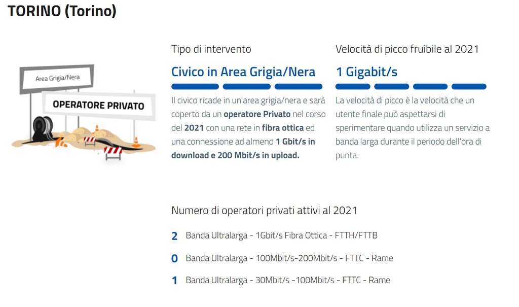vivo da una decina di anni a torino e recentemente sto valutando di comprare casa in zona Sassi, dove per la prima volta non avrei copertura FTTH. L'attuale inquilino ha contratto fibra misto rame con TIM. Guardando qui in girosul forum sono andato a guardare la copertura per il civico nei siti BUL e infratel consigliati, di cui vi riporto gli screenshot di seguito. Dal sito BUL si parla di copertura a 1 Gbps da operatore privato ma non riesco a capire quale sia. Nella via non mi è sembrato di vedere alcuna borchia PON. Mi potreste aiutare a capire cosa potrei ottenere in termini di connettività fibra o se dovrò rivolgermi a sistemi FWA/4G?