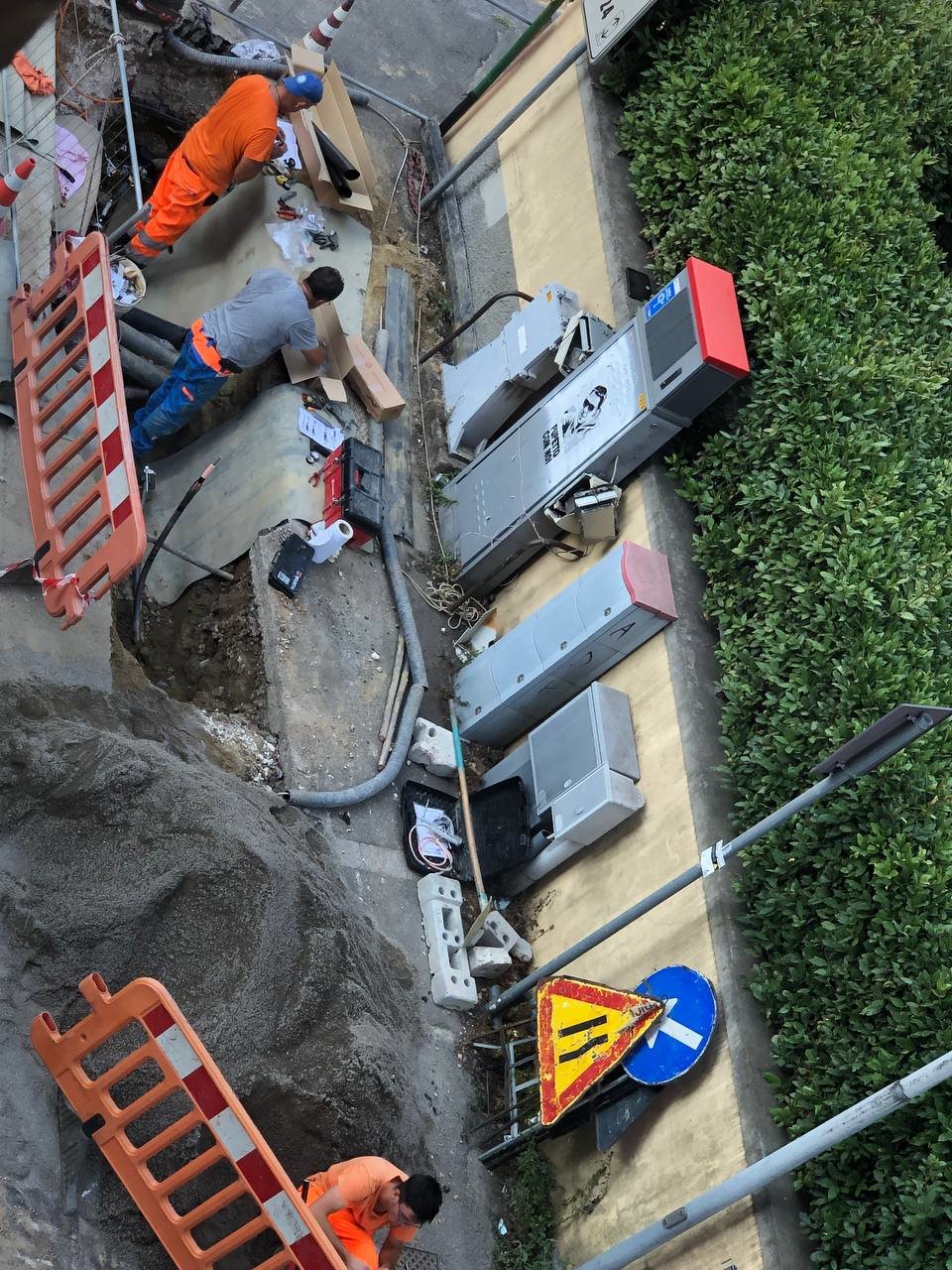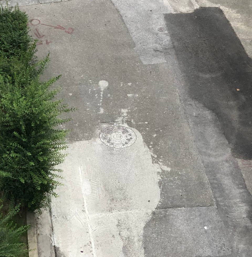 come potete vedere ci sono i vecchi segni rossi prima dei lavori e poi hanno fatto una mini trincea con scavo "largo al tombino" come si vede in foto, poi finiti i lavori hanno lasciato la mini trincera aperta solo dal lato del tombino e poi successivamente coperta i giorni successivi.