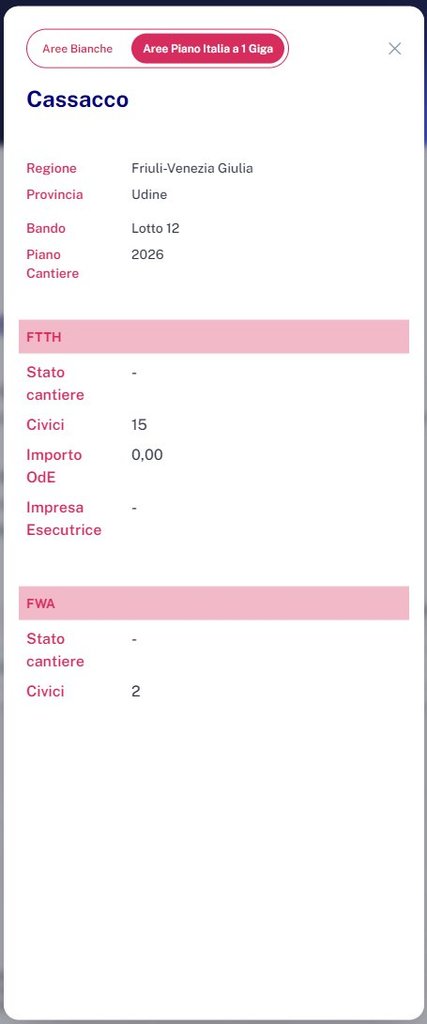 Inoltre, il sito Open Fiber con lo stato dei lavori per il mio comune è cambiato così: