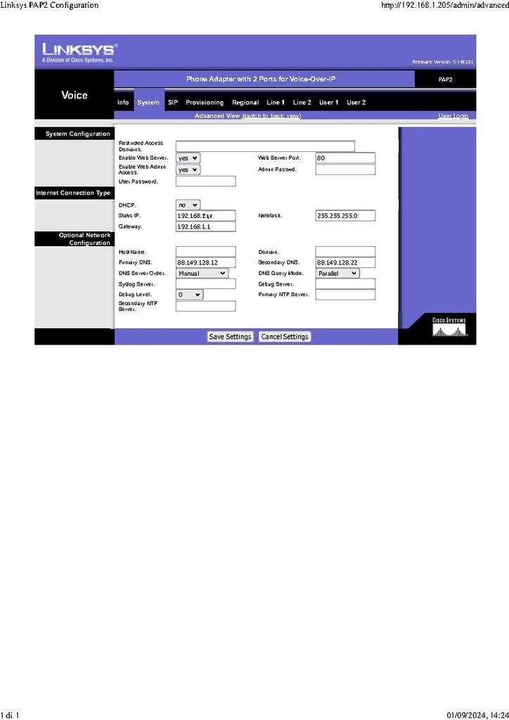 ho configurato il Lynksys PAP2T-NA e funziona tutto, per maggiore sicurezza volevo mettere una password che impedisca l'accesso alla modifica dei dati ma non trovo il campo dove inserire il nome Utente,