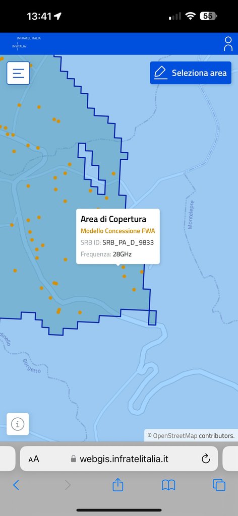 Tramite il portale infratel sembra che sia stato coperto recentemente dalla FWA. La mia abitazione è segnata in mappa e sembra essere coperta da una nuova bts che si trova però a 5,8 km in linea d’aria da casa mia.