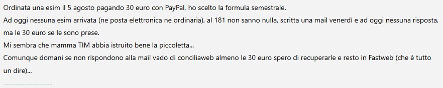 _Lex_ fabrizioo34 in agosto la vedo dura.. a Settembre come minimo Comprensibile. Però allora non potrebbero interrompere momentaneamente la vendita delle eSIM?