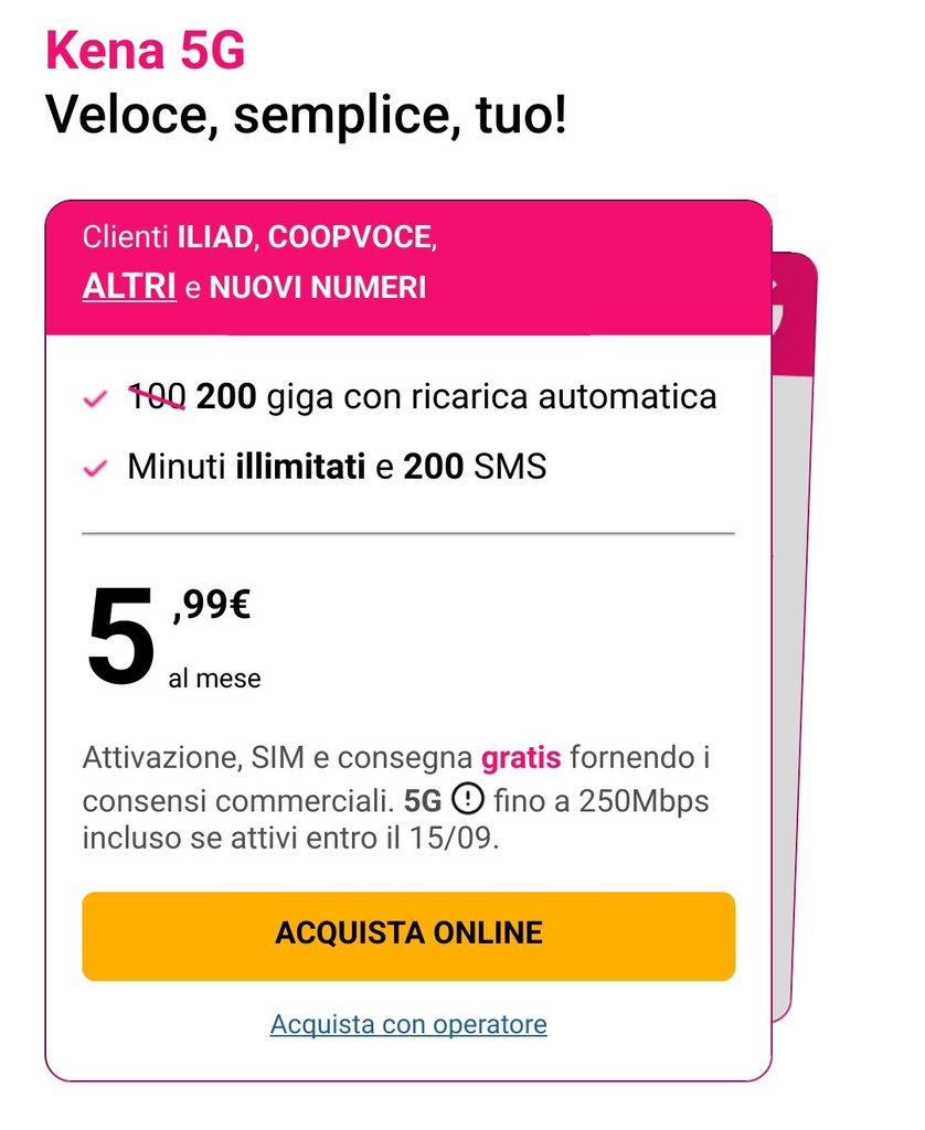 Piccolo OT sempre per Kena: io dovrei avere 200gb che il sistema vede come separati, 100gb + 100gb per la ricarica automatica e prima mi scala quelli "omaggio" della ricarica automatica, e poi quelli "veri". Ho finito i 100gb "ricarica automatica" e mi è arrivato un sms che dice "Hai consumato i 100GB del bundle. Invia INTERNET ON al 40543711 se vuoi continuare a navigare al costo del Piano Base Kena". Ovviamente non l'ho fatto e la navigazione non si è interrotta ma ha iniziato a scalarmi il traffico dagli altri 100gb di bundle com'è giusto che sia, ma comunque l'sms è sbagliato e non ha senso 😅