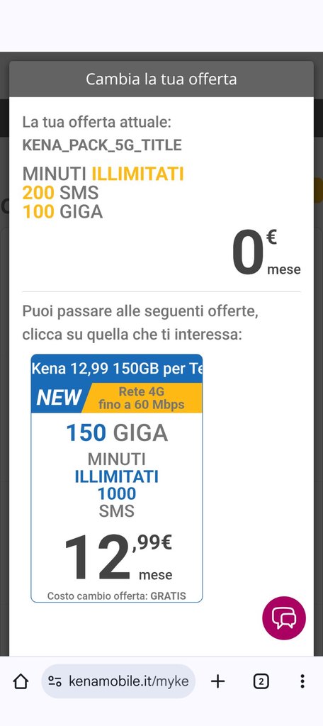 Neromanto _Lex_ Bisogna capire quindi che tipo di offerta cerca @Neromanto Sarei interessato ad attivare la kena pack 5g. Ma neanche se contatto l'assistenza mi cambiano il profilo??? Mi rode davvero fare tutto il giro...