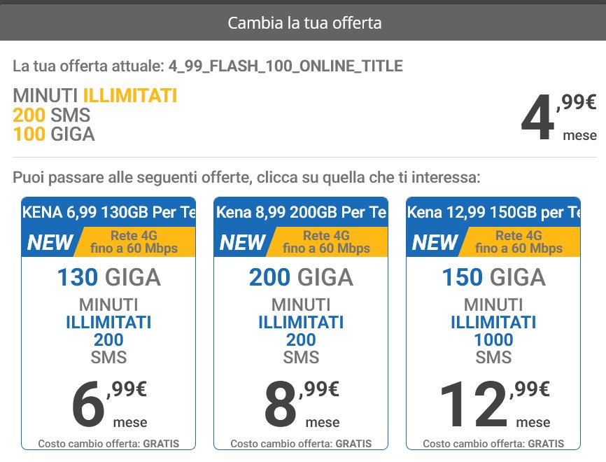 digitalboy @Neromanto dalle proposte che evidenzi, mi sembra di interpretare che kena voglia lasciare in 4G le offerte sotto i 5.99€ quindi potrebbe essere producente una triangolazione verso coop e poi di nuovo in kena e se incastri i periodi giusti di rinnovo potresti farlo a C0. Anzi approfitta del primo mese Gratis che ti Offre coop e lasci anche il tempo a Kena di risolvere le -impasse- che sta affrontando con le novità che ha introdotto ed a cui fa fatica ad attivare.
