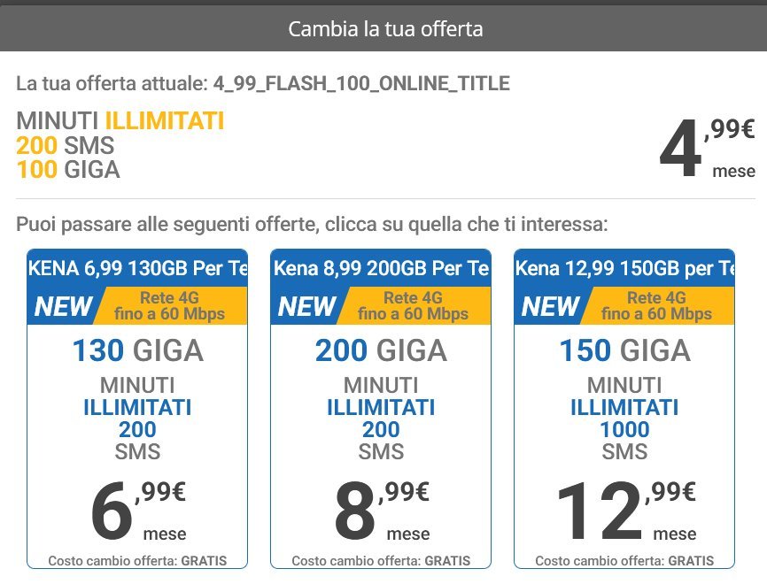 Neromanto _Lex_ Bisogna capire quindi che tipo di offerta cerca @Neromanto Sarei interessato ad attivare la kena pack 5g. Ma neanche se contatto l'assistenza mi cambiano il profilo??? Mi rode davvero fare tutto il giro...