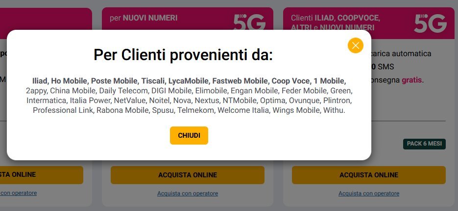 fabrizioo34 digitalboy confermo quanto detto da @Jeff9 purtroppo 😒 Hanno fixato. Comunque smanettando sul codice HTML dell’offerta (o su qualsiasi offerta che ti interessa) puoi incollare il codice riferente a WINDTRE e il sito ti fa andare avanti lo stesso con la richiesta di MNP 😅 Solo che ovviamente devi andare a smanettare da PC a mano. Se lo vuoi spiegato ti lascio il mio telegram