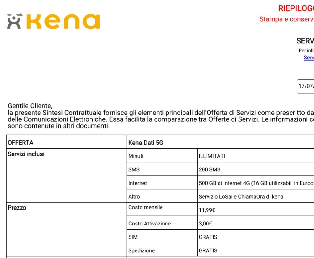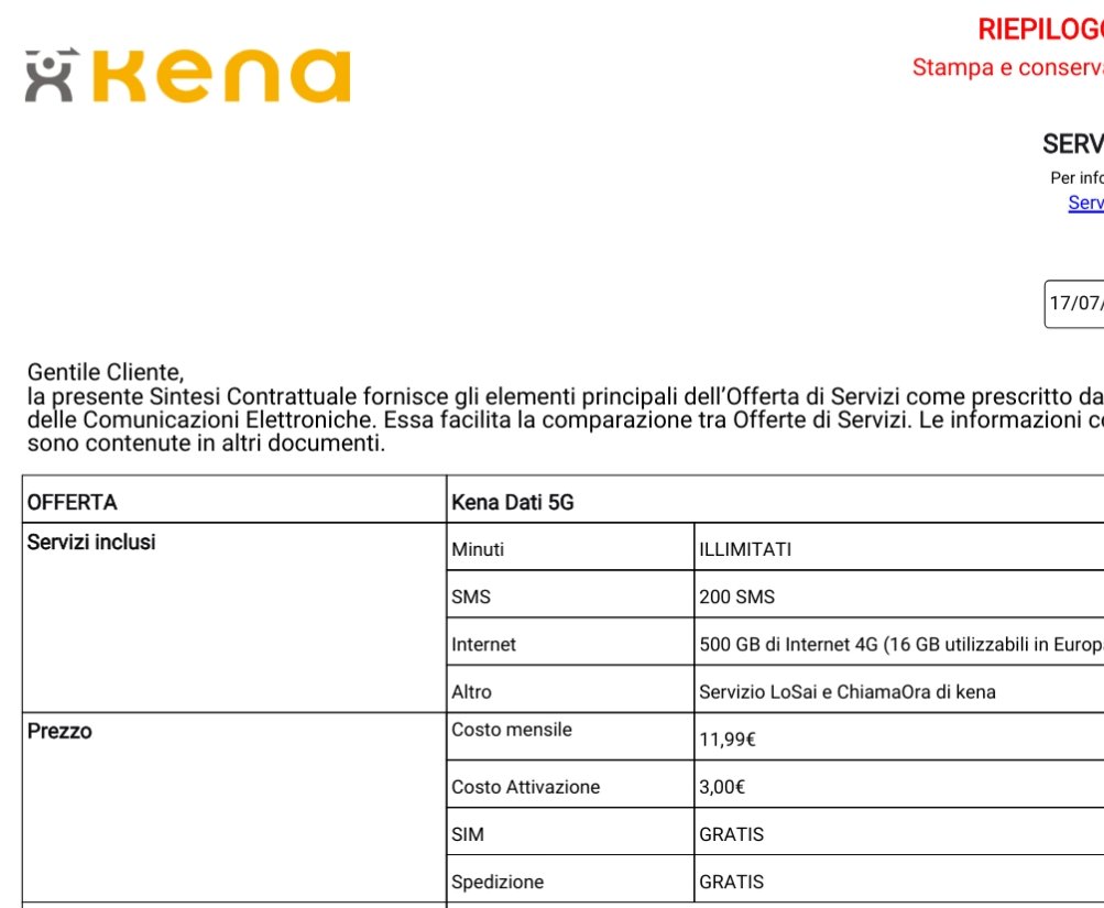 _Lex_ fabrizioo34 E internet è in 5G o in 4G? Perché sia nella sintesi contrattuale che nella trasparenza tariffaria parla solo di 4G/LTE Advanced. https://www.kenamobile.it/mso/?said=8797 https://www.kenamobile.it/wp-content/uploads/KENA_Prosp_Kenadati_5G_16072025.pdf
