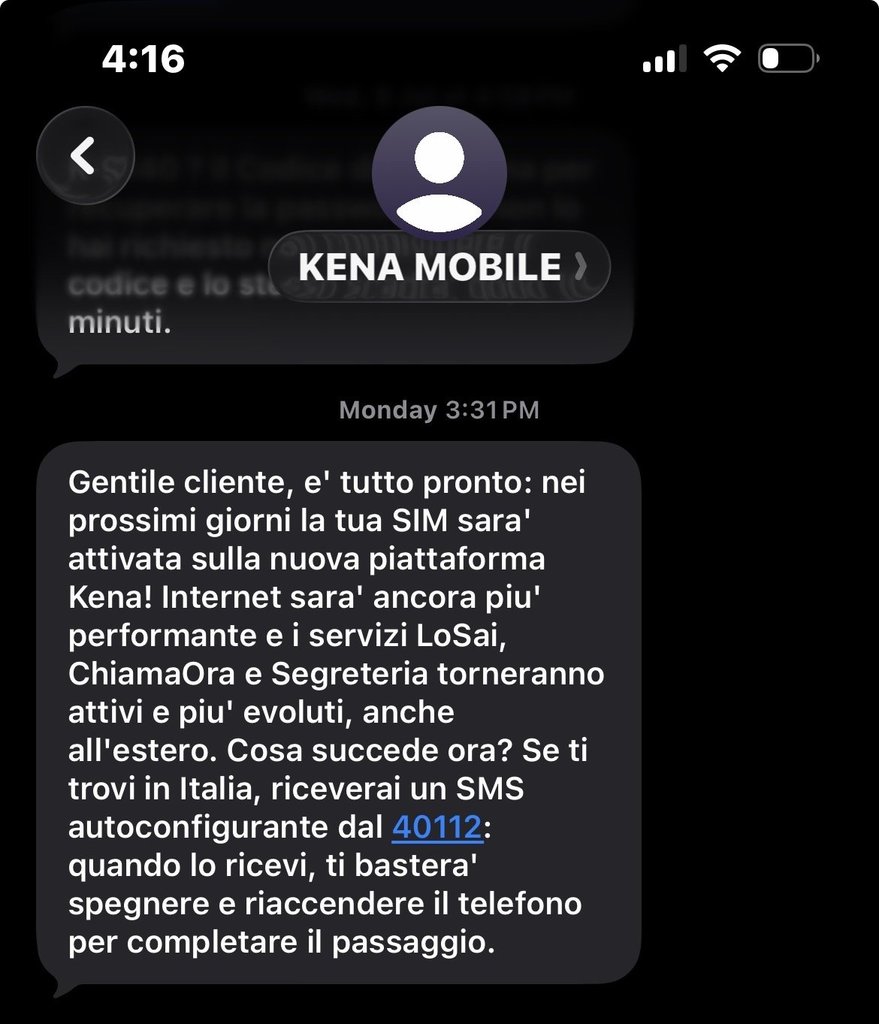 fabrizioo34 steve0102 se non erano davvero pronti non lo lanciavano. La migrazione coincide con il lancio del 5G e per questo ad altri va e a molti no. Sul 5G anche loro lo scrivono: Perché in alcuni casi possono volerci alcuni giorni per attivare il 5G di Kena? In questi mesi Kena sta completando la migrazione tecnica delle SIM su una nuova e più performante piattaforma. Le SIM interessate a questo evento ricevono un SMS dal mittente 40112 con il quale sarà chiesto di spegnere e riaccendere il telefono per rendere attivo il passaggio a nuova piattaforma e poi completare in automatico l’attivazione del 5G. Nella tua area MyKena potrai sempre verificare lo stato di attivazione del 5G.