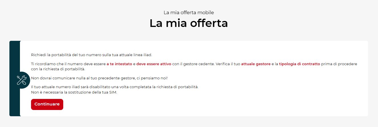 (questo, invece, è lo stato della sezione portabilità su un'altra SIM su cui è già stata effettuata MNP in passato, dove una nuova richiesta di portabilità non è possibile)