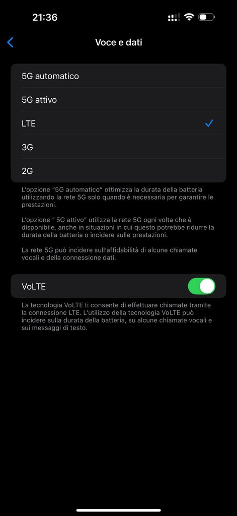 A volte farebbe comodo invece, in tantissimi posti con Vodafone in 4G oppure spesso anche in 5G con quella famosa unica tacchetta e le chiamate vanno ma non si sentono oppure neanche partono, e sta lì sempre in 4G/5G senza fare switch, proprio si ostina, e niente non chiamo, piuttosto non mi fa chiamare, ed ovviamente il segnale 2G EDGE è presente in quel punto, con valori molto migliori, ma niente non ci prova neanche a scendere in 2G, sarebbe molto molto utile, poi ovviamente lasciata quella zona, VOLTE On Ovviamente