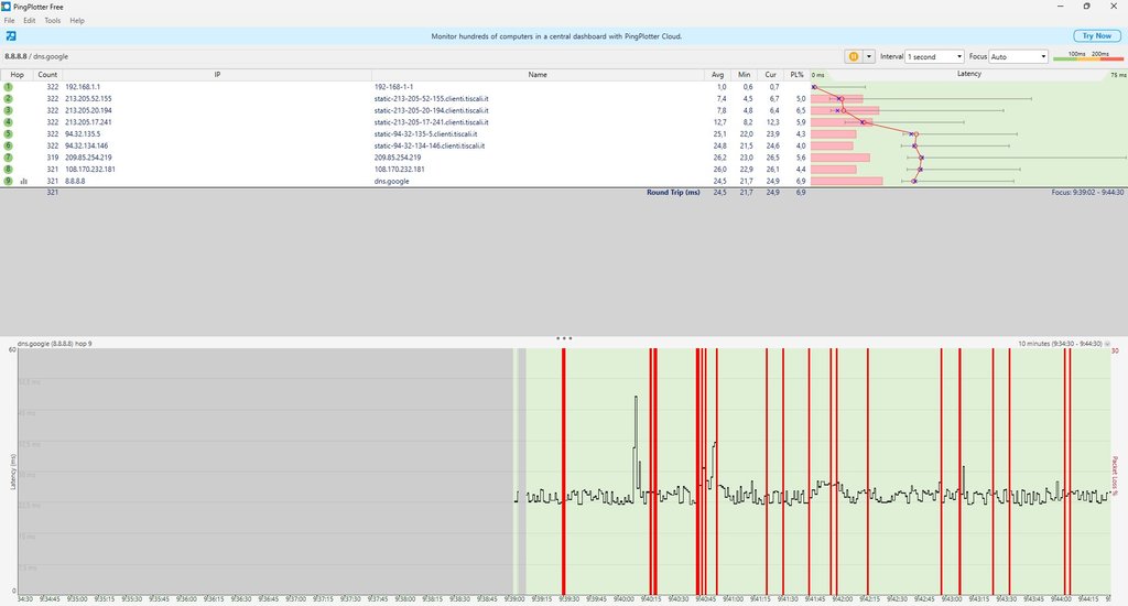 tizianob Da giorni, a singhiozzo, appaiono continui problemi di banda e perdita di pacchetti su rete tiscali Sono connesso con una FTTC 100 Mbit con ottimo segnale ma nonostante questo c'è una costante perdita di pacchetti all'interno della rete tiscali questo alle 09.45 di giovedi 19/09/2024 La velocità di download ( con speedtest ) oscilla fra i 5 e i 20 mbit in diversi momenti