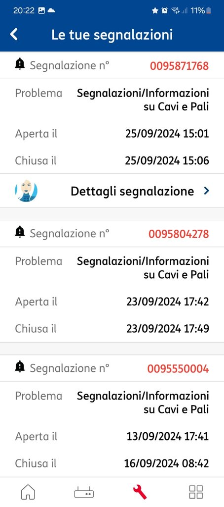 Aggiornamento: Ho notato questa cosa strana nell'app di TIM, la segnalazione risulta chiusa, e la terza segnalazione è pur vero che ho chiamato col numero di casa fisso, ma l'ho fatto segnalando al numero verde, ma mi è arrivata la segnalazione sempre alla mia utenza, risultano tutte chiuse. Com'è possibile? Comunque ogni volta mi hanno avvisato dicendo che entro 48 hr avrebbero sistemato o chiamato, ma ancora nulla. Mi sa che mi tocca chiamare i vigili del fuoco.