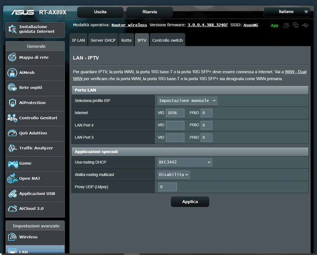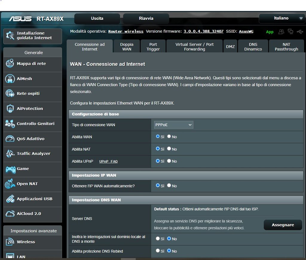 Ho subito contattato il supporto Premium per effettuare un altro tentativo di configurazione da remoto ma senza successo. In un paio di giorni mi metteranno in contatto con un tecnico più esperto con i router ASUS.