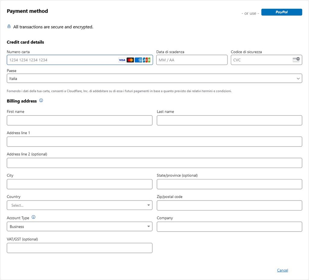 che mi porta alla schermata dove dovrei inserire i mie dati e le coordinate di una carta di pagamento... 🤔