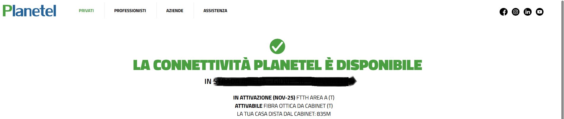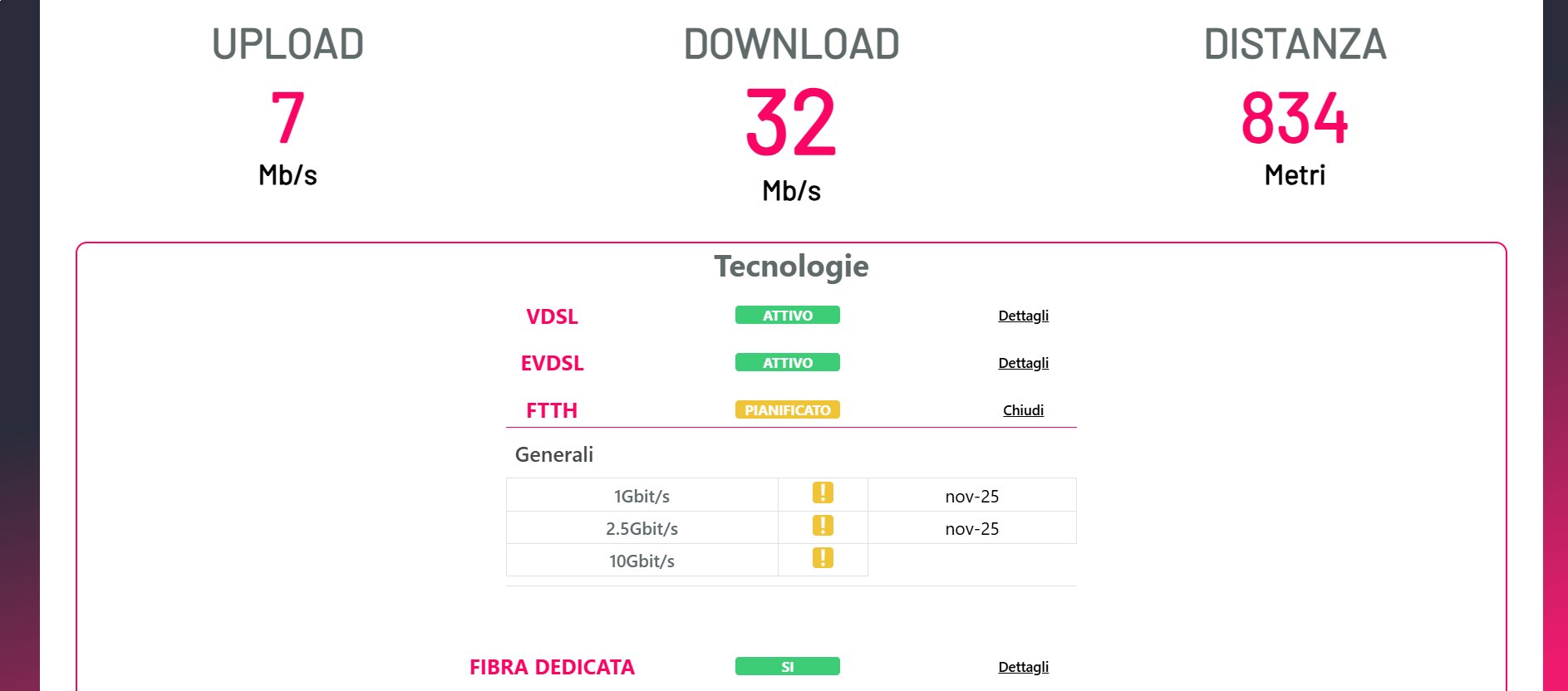 Bene mi confermi che almeno lato palazzo fibra arrivata.
