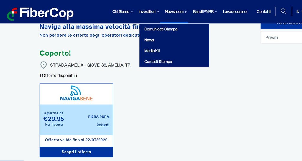 Ma stamattina ho controllato sul sito Fibercop e mi da questo