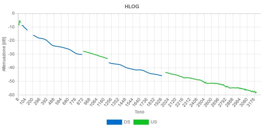 Ho ricontattato la tim che mi ha detto che si strattava di un guasto generalizzato su tutta la zona, e che avrebbero mandato un tecnico a risolvere la situazione. Ieri la linea è tornata e la segnalazione è stata chiusa come risolta, ma la velocità della linea è fortemente ridotta, 16Mb/s. Per curiosità ho generato i grafici hlog, e dei due il grafico QLN mi sembra un po' anomalo.