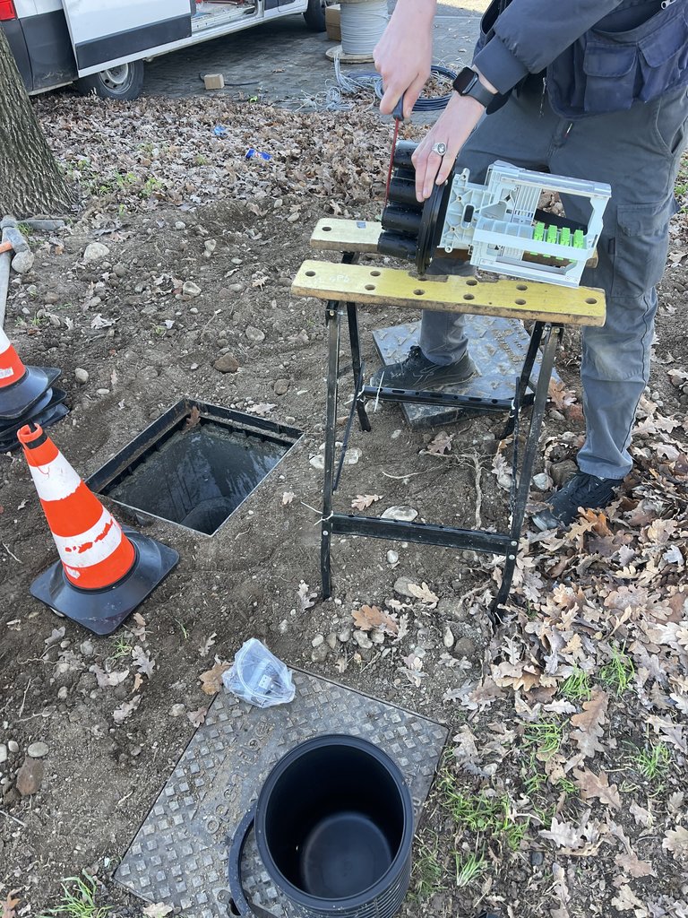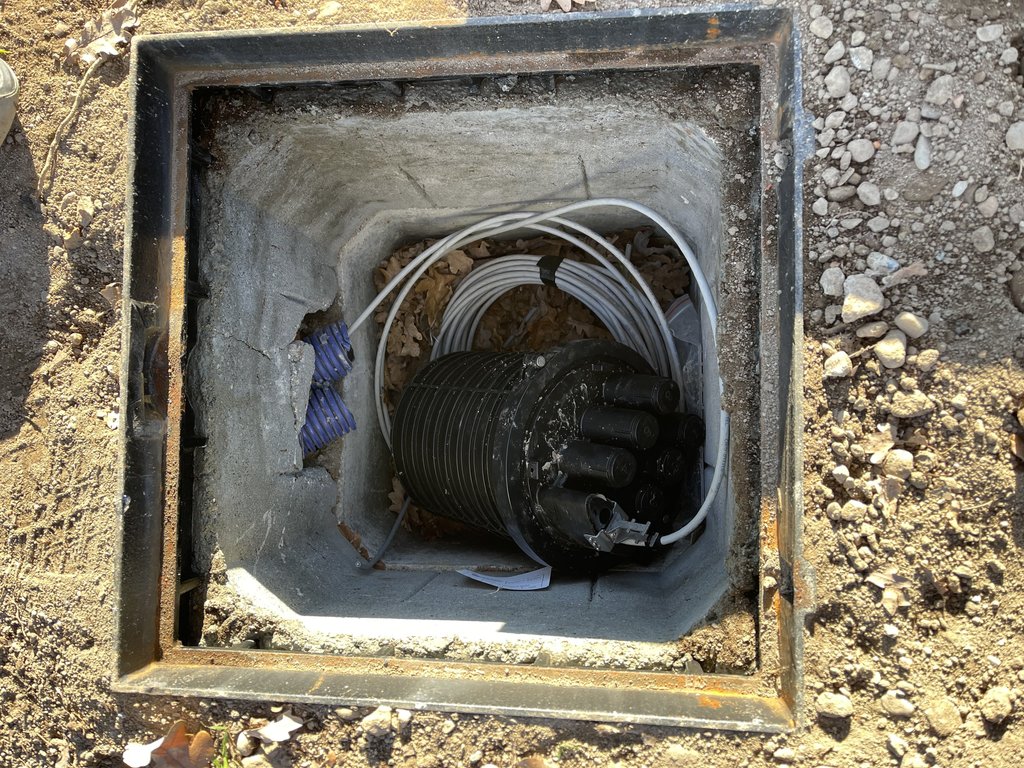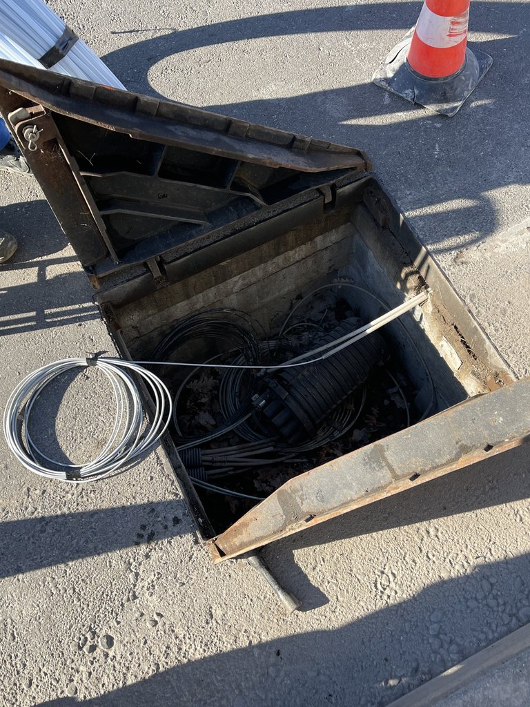 Il pozzetto è già stato giuntato (con un cavo da 48 fibre) in presenza del sottoscritto al PFS in via Leonardo Da Vinci, qui.