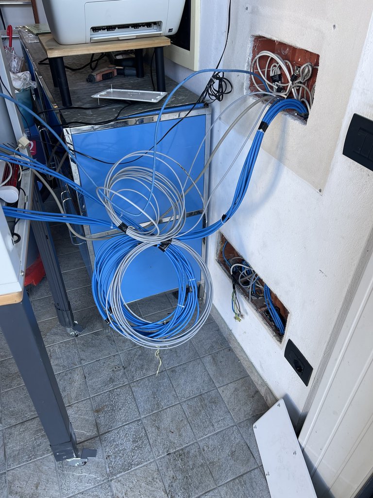Ecco la foto delle 5 fibre (su 48 totali) già giuntate, con il relativo cassetto e le porte su cui sono attestate: