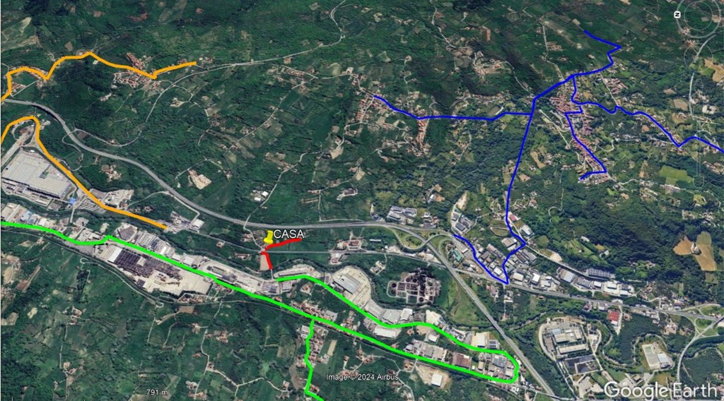 Per assurdo la fibra che passa davanti alla mia abitazione risulta più vicina ai tracciati BUL FTTH dei comuni di Pratola Serra(AV) (COLORE ARANCIONE) e soprattutto di Montefredane (AV) (COLORE VERDE). Il collegamento a quest'ultimo, con ulteriori 50 metri circa di tracciato, renderebbe spiegabile l'intervento eseguito nel 2018 nella strada dove abito.