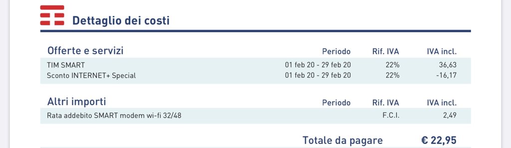 Avevo una promo di tim attiva che era la tim Smart+special a 100 mega per la quale pagavo 31€ al mese e 2.49€ al mese di modem.