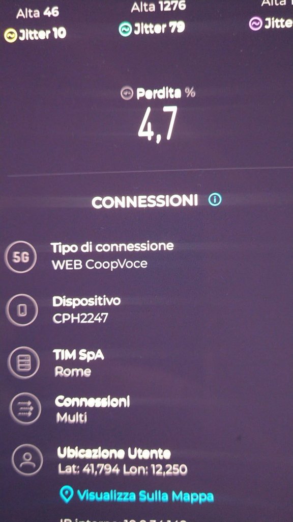 loree12 love1234 Ah ok è selezionato quel server. Si, può succedere. Luso84 Apposto, comunque ho scritto all'assistenza e stanno lavorando per il 5G. Quindi dobbiamo ancora attendere e presumo che sarà su rete Vodafone come è stato dichiarato dall'AD di Coopvoce.