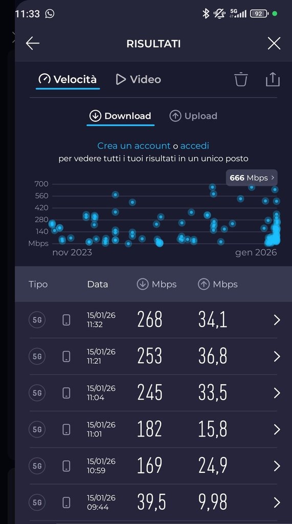 Stamattina avevo prestazioni imbarazzanti, circa 40Mbps in dl e 10Mbps in ul.