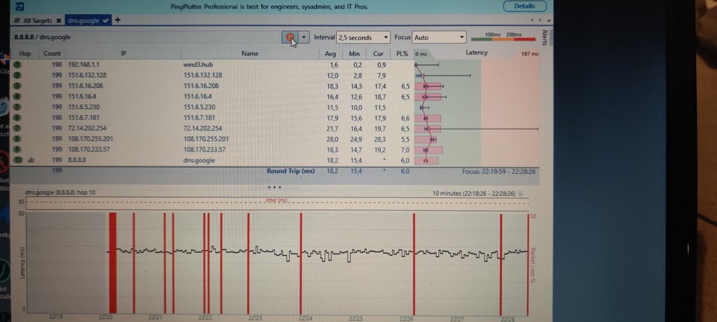 Non un fatto di velocità in sè quanto il tragitto che Wind3 ti fa fare porta a perdite alte di pacchetti.