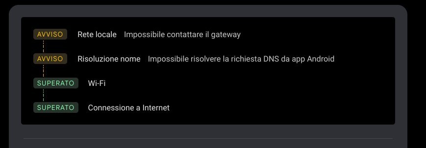 Ho fatto un reset sia del Modem che del Chromebook ma niente, ho fatto una diagnostica della connessione e mi da questo risultato che allego con la foto.