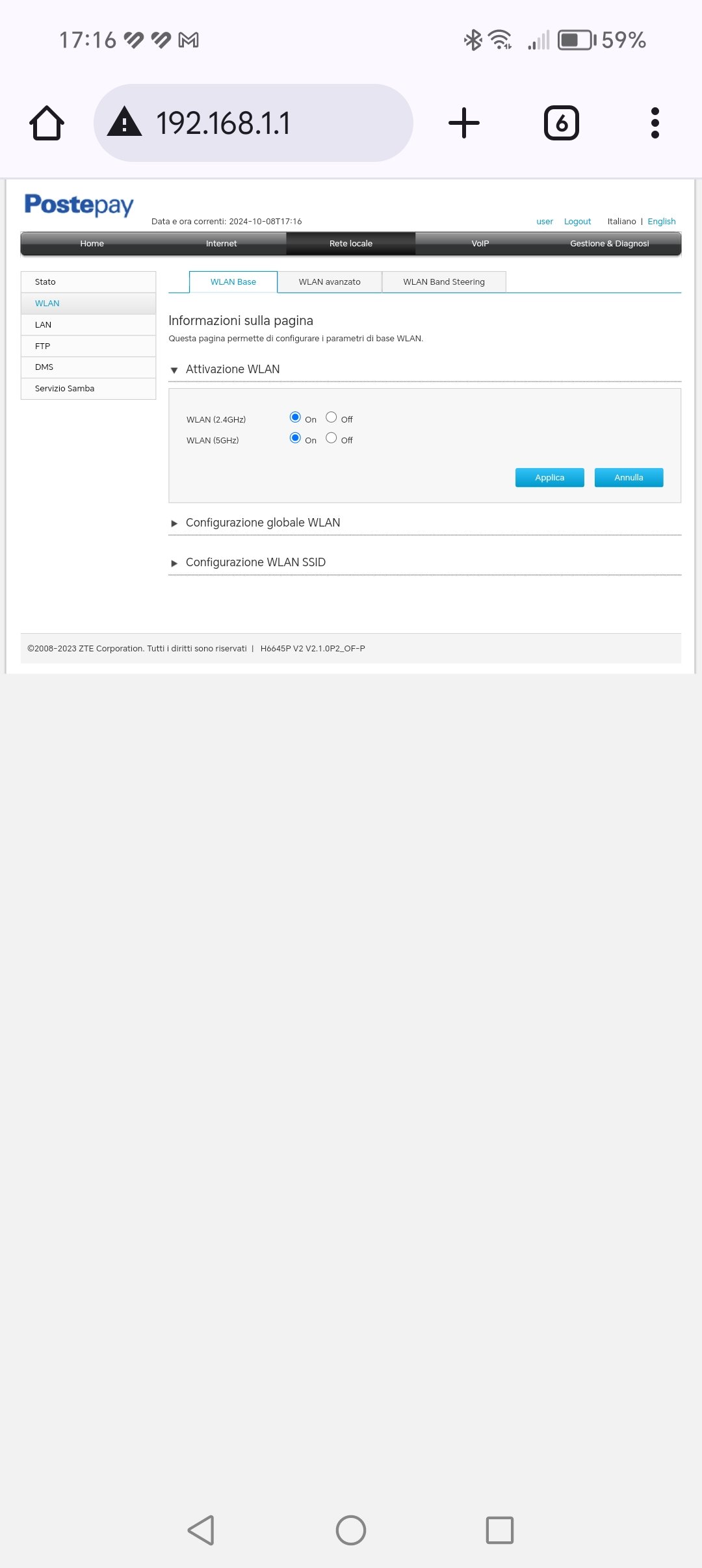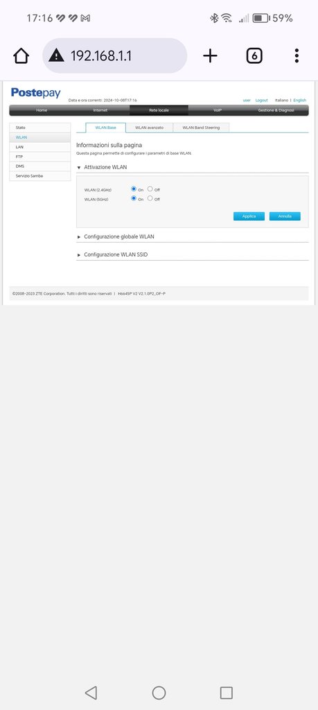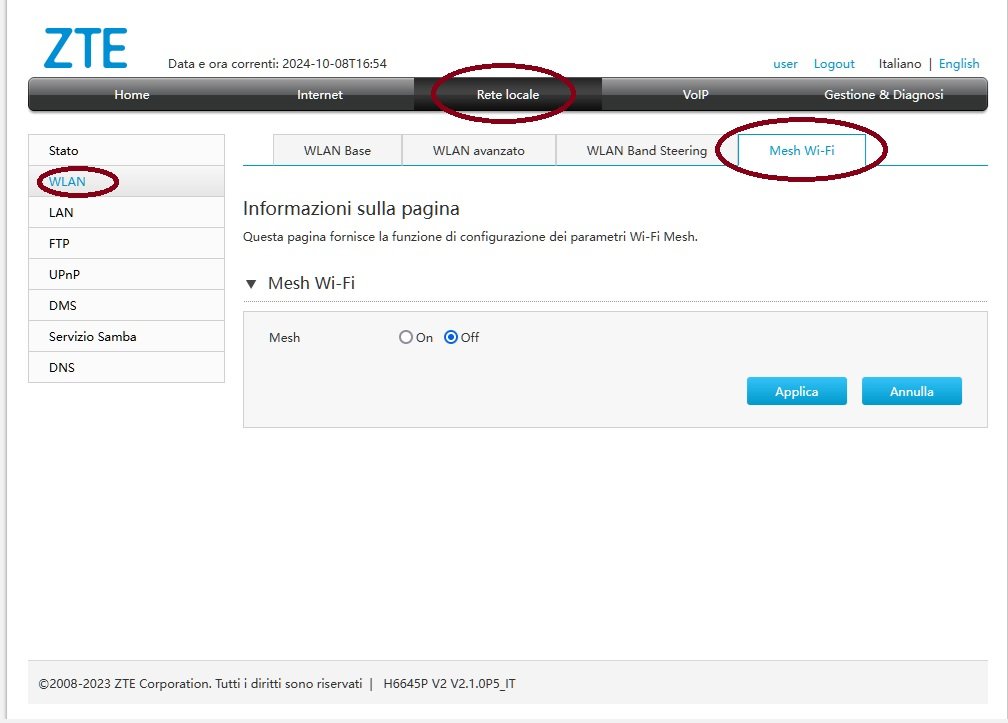 Aperock Supermike Non sfrutto la rete mesh con lo ZTE quindi non so dirti come accoppiare un repeater. La gestione però la trovi qui: Non so se nel modem fornito da Poste, sia una voce nascosta; sono comunque entrato come utente normale, non admin.