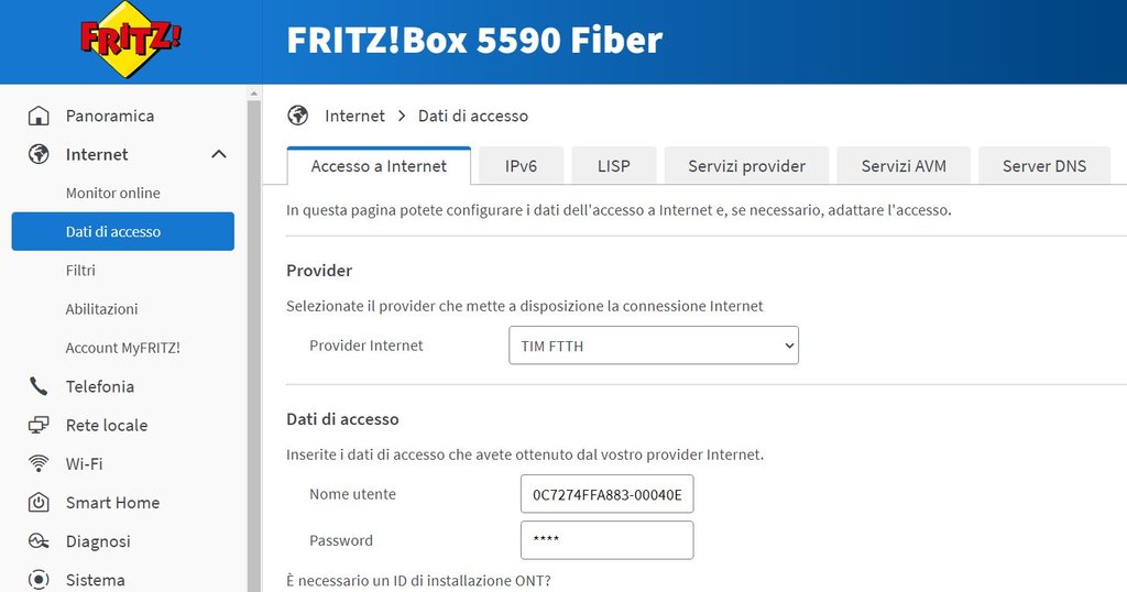 Ho chiesto dunque se magari c'è da configurare il nuovo FritzBox 5590 alla 2,5gb (anche perchè nei Dati di Cesso-> Accesso a Internet la scelta del provider TIM FTTH (preimpostata) non fa alzare i parametri delle velocità nel FritzBox) ma non mi hanno saputo rispondere e che magari dovrei parlare con l'assistenza informatica TIM che però costa 29,90 Euro in bolletta.