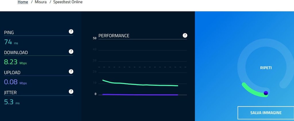 bm182 ellegi71 Anche per me in provincia di Ascoli Piceno: pochi mega in download e quasi nullo lo upload. Ping oltre i 70 ms