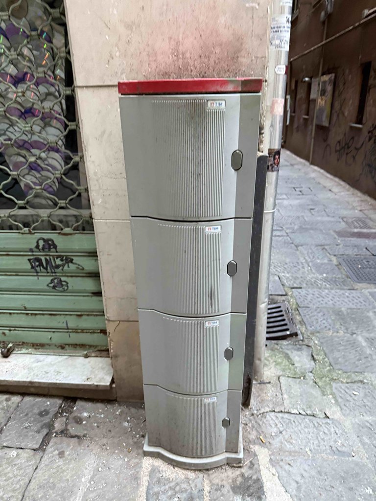 Al contrario il civico 56 risulta servito da altri distributori rame tra cui in particolare il 19/12 censito al civico 47/R ed associato ad uno dei distributori ottici (ROE) fotografati cioè il seguente (censito al medesimo civico 47/R)