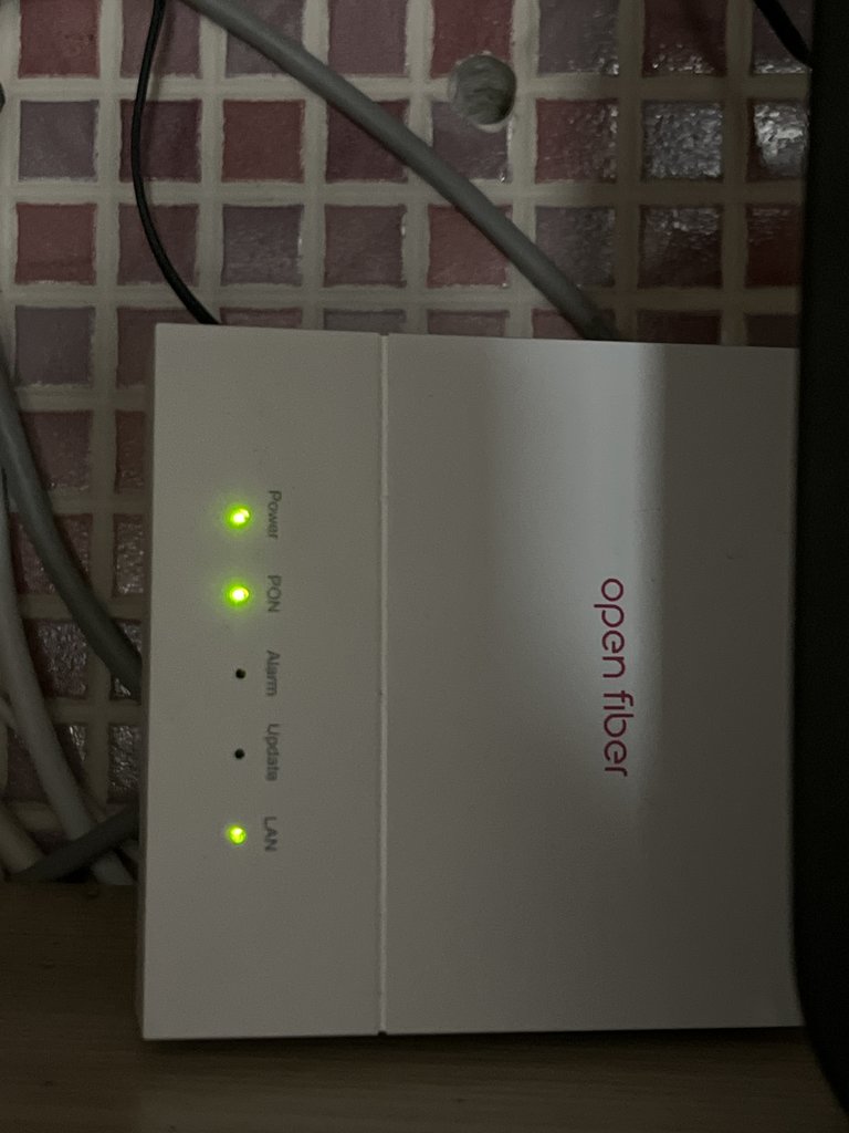 Lunedì 28 ottobre 2024: ho appuntamento con i tecnici per installare la borchia ottica ed attivare la fibra ottica con Fastweb. Arrivano ben in tempo, passano il cavo, installano borchia ed ONT (se non sbaglio si chiama così) Open Fiber - constatano che tutti i led giusti siano accesi e verdi - controllando la qualità del segnale ed è tutto a posto. Unico problema, a detta loro, non hanno con sé il modem giusto e me l’avrebbero portato il giorno successivo. Insisto ma non c’è nulla da fare, mi dicono che l’installazione sarebbe conclusa il giorno dopo.