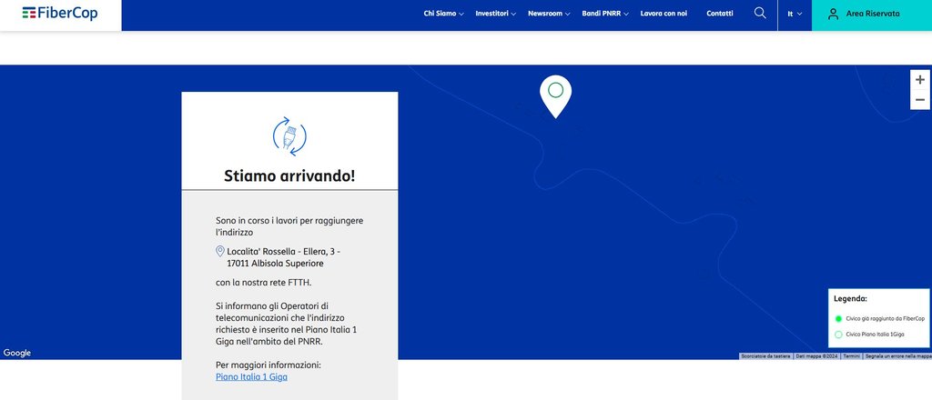 Dopo aver appurato che per ora l'unica soluzione è Starlink, ho visto che rientro nel Piano 1Gb, sul sito di FiberCop risulta come segue: