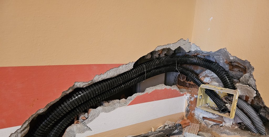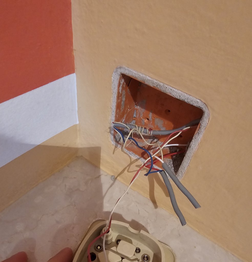 Ho fatto mettere una nuova scatola da 3 posti e due nuovi tubi che arrivano alla nicchia appena sotto dove ho il quadro elettrico della casa.