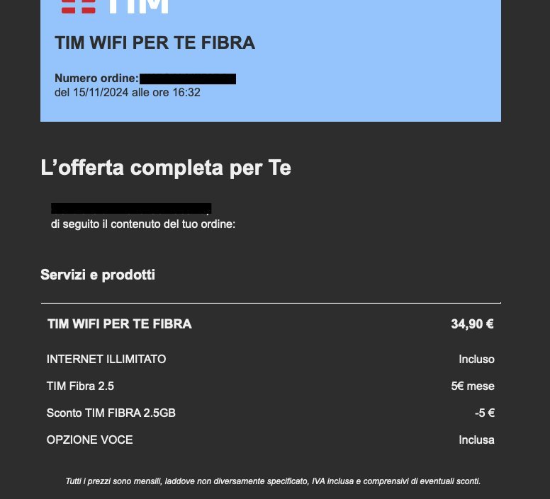 Il mio contratto era di 38,90 al mese , e oggi prima di passare ad altro operatore o attivare una nuova linea , ho voluto far una prova, cambiare il mio contratto con una nuova offerta TIM WIFI PER TE FIBRA.