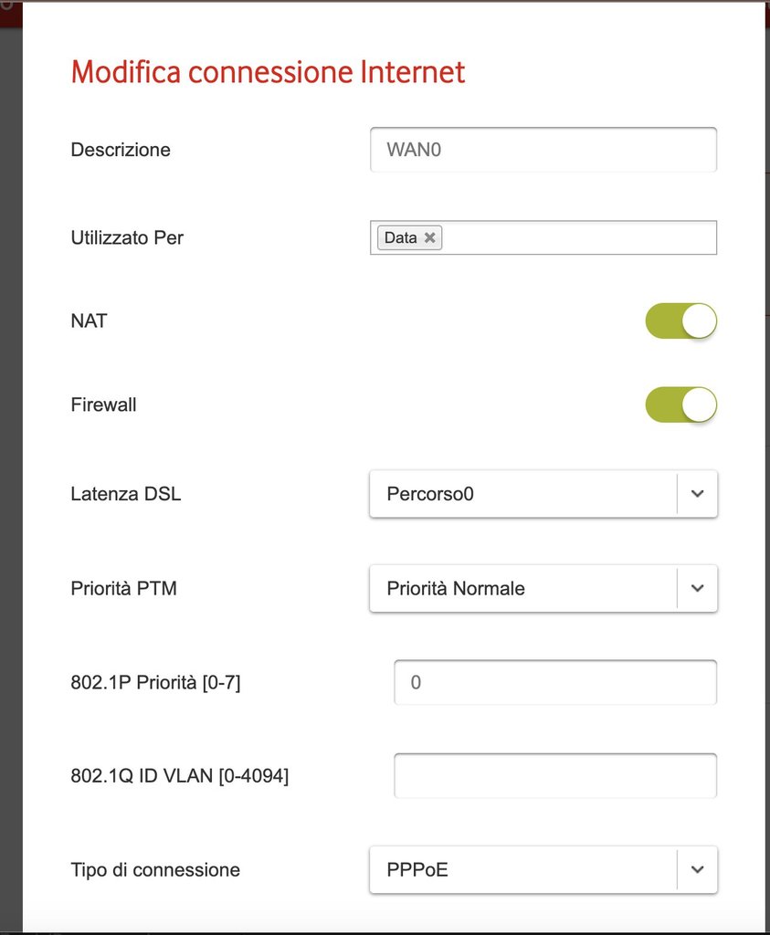 Ciao a tutti, oggi il tecnico è venuto a montarmi la mia connessione Dimensione basata su Eolo e devo dire che è uno spettacolo. Ho provato con un router Vodafone Station vecchio (quello bianco) configurando i parametri PPPoE e va velocissimo, sono veramente soddisfatto e dato che ero "abituato" a una vecchia FTTC vodafone a 20mbps, passare a 200mbps in un giorno per me è un sogno. Nell'attesa che Dimensione mi spedisca il proprio router, ho pensato di usare la Vodafone Power Station (quella nuova) dato che ho sia la vecchia Station bianca (e funziona), sia la power, che è quella nuova nera. Purtroppo però non riesco a far funzionare la Power Station, ho configurato tutti i parametri ma continua a non connettersi. Cosa potrebbe essere? Purtroppo la Vodafone Station vecchia ha qualche porta ethernet rotta e non posso usarla.